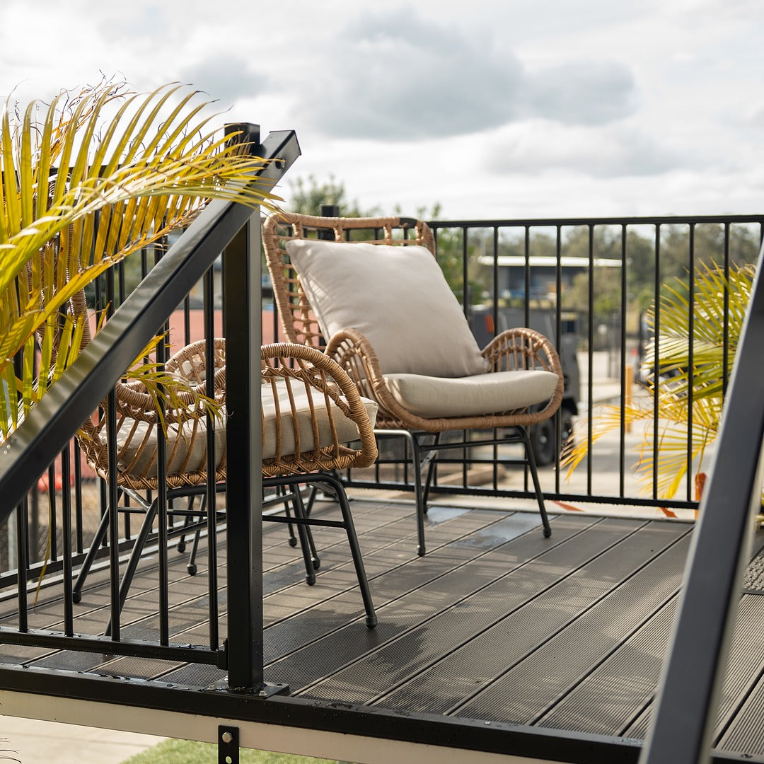 • Large decking, black aluminium railings and stairs - optional upgrade